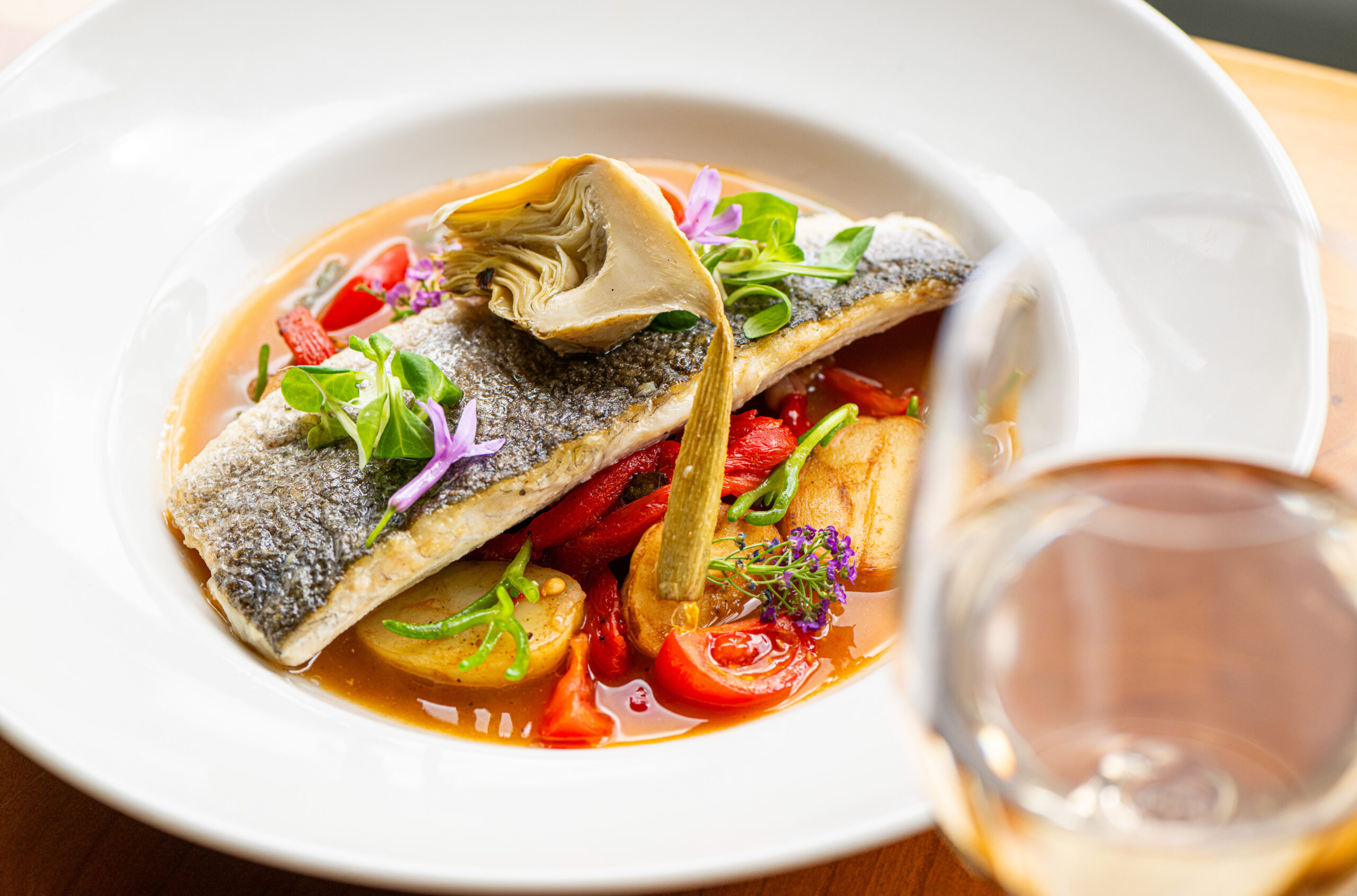 Head Chef Lewis Ward, with Michelin-starred Aaron Patterson of Hambleton Hall, presents a refined selection of seasonal dishes that change weekly.
